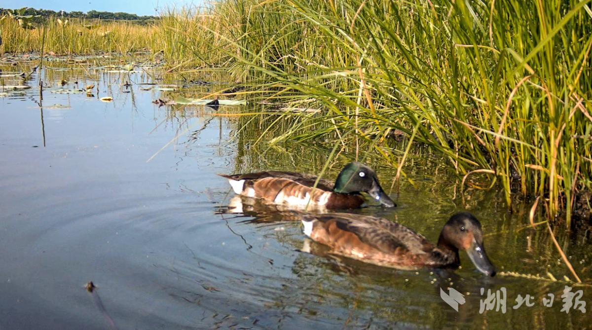 2024年,武汉首次在豹澥湖虾塘试用人工巢台,并顺利繁殖出首批雏鸭,打破“自然繁殖成活率低”的困境。为了给青头潜鸭营造更安全的家园,武汉市划定了区级保护红线,建立生境恢复示范点,在青头潜鸭繁衍密集区域,当地居民主动推迟水草收割时间,以免影响它们“坐月子”。