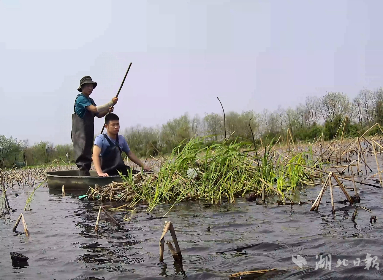 前不久,水位上涨,武汉观鸟协会迅速组织志愿者扩大加固规模,截至今年六月底已累计完成可升降改造79个。升级后的人工巢台更“智慧”,结构稳固、能自动适应水位变化,还铺上淤泥和水生植物,力求为青头潜鸭提供最舒适的繁衍之家。